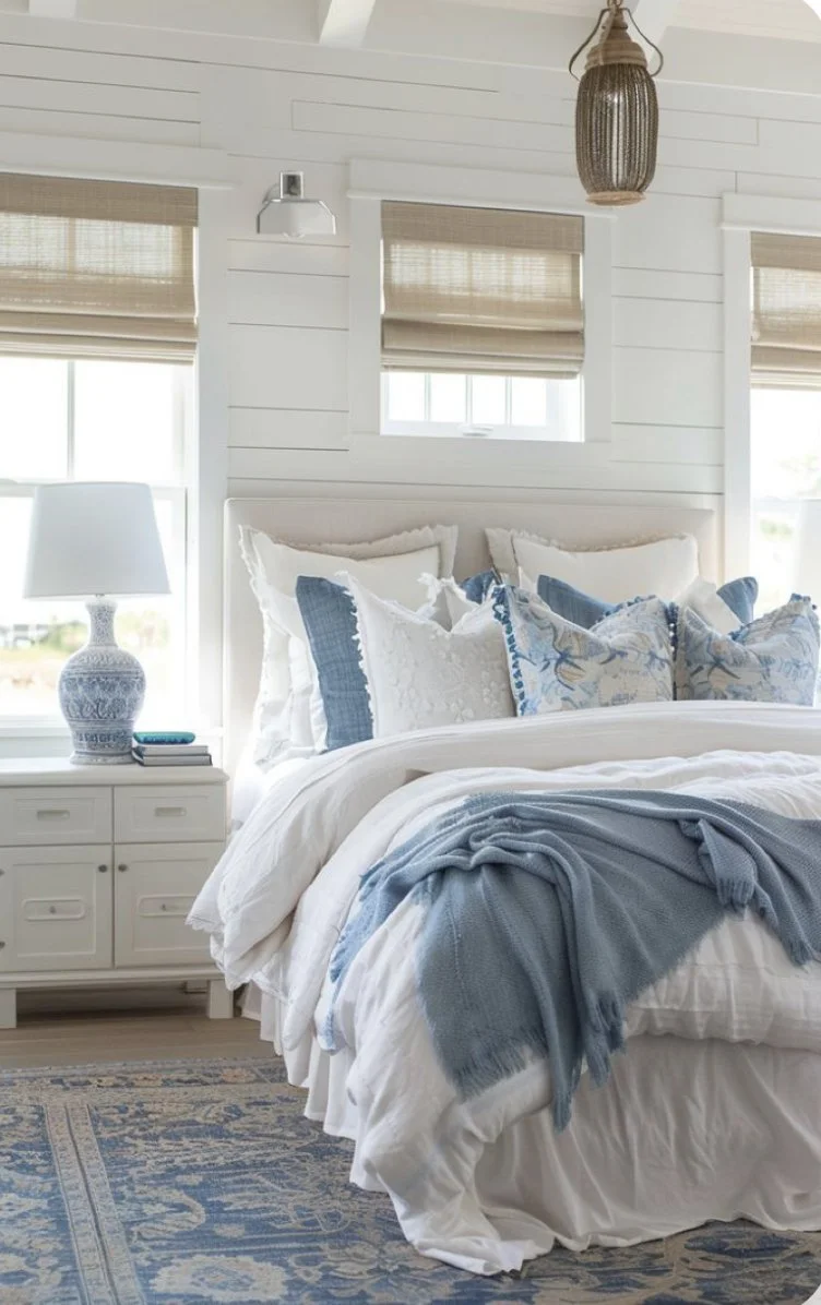 El estilo costero es una tendencia atemporal que trae la serenidad del mar a tu hogar. Para conseguirlo, apuesta por una paleta de colores que evoque la playa: azules intensos, turquesas suaves y blancos puros que recuerdan el cielo despejado y las olas del mar.